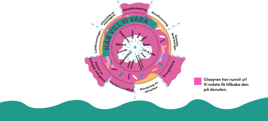 Hej, idag jobbade vi i klass Blanca med omskaparnas koncept, det var kul. Det första vi gjorde var att vi fick lyssna på en text som våran lärare läste upp. Då skulle man föreställa sig en plats, var som helst i världen. Sen skulle man tänka på hur det luktade, kändes och hur platsen såg ut. När man då ”satt” på platsen skulle man tänka på vad man kände sig tacksam över. Vi kändes oss tacksamma över att vi har en frisk och välmående familj. Efter det fick vi ställa oss på en ”linje” som visade hur jorden mådde, de flesta ställde sig närmast att jorden inte mådde bra. Våran lärare gav ut lappar som det stod olika saker på t.ex. ”havsförsurning” eller ”vatten”. Det sista vi gjorde var något som kallades för donutmodellen. Det gick ut på att man skulle lägga ut de ”dåliga” lapparna i en stor ring, och i mitten skulle de ”bra” lapparna ligga i en mindre ring. Sedan frågade våran lärare vilka gränser vi har nått på de dåliga, nästan ingen gissade rätt. Hoppas att vi får chansen att träffa er igen 😊