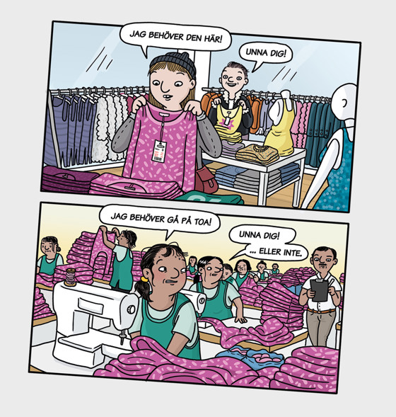 - Vad har du på dig? Vilka material är dina kläder gjorda av? Vilket land är dina byxor sydda i? Syna dig själv i sömmarna och skriv ner vad du hittar.