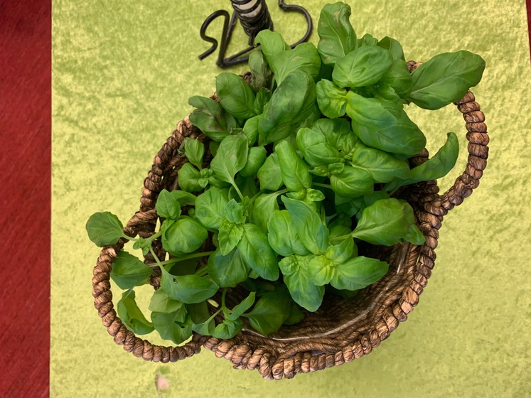 Vi låtsades att en basilikaväxt var jordens alla resurser. Om vi säger att basilikan var alla jordens resurser och vi skulle bjuda en massa kompisar på världens största middag då skulle det inte räcka till nästa dag. Vi fick ta ett basilikablad var och då fanns det väldigt mycket kvar. Vi tyckte det var kul och förstod vad som menades. Basilikan överlevde och vi kan plocka lite varje dag nu. Det gäller att inte ta mer än man behöver!