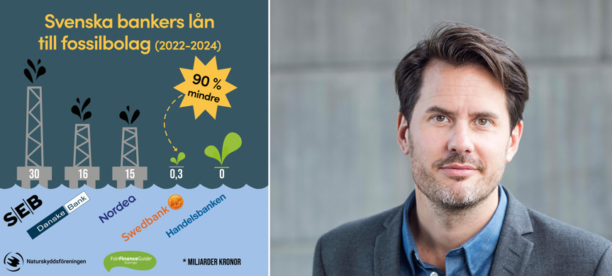 – Bankerna måste sluta finansiera jakten på mer fossila bränslen, det slår helt undan benen för de klimatåtgärder som görs. Jag tror inte att svenska bankkunder uppskattar att deras pengar används på detta sätt, säger Jakob König som leder granskningsinitiativet Fair Finance Guide på Sveriges Konsumenter.