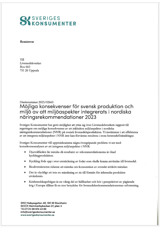 Sveriges Konsumenter vill uppmärksamma några övergripande problem vi ser med konsekvensanalysen av att integrera miljöaspekter i NNR: