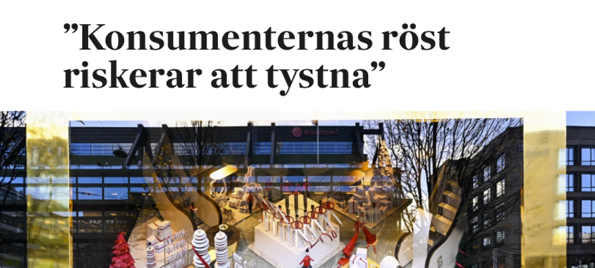 De tidigare konsumentministrarna Margot Wallström och Per Bolund oroas över situationen för Sveriges Konsumenter och har skrivit ett debattinlägg i Svenska Dagbladet tillsammans med chefen för den europeiska konsumentorganisationen BEUC, Agustín Reyna.