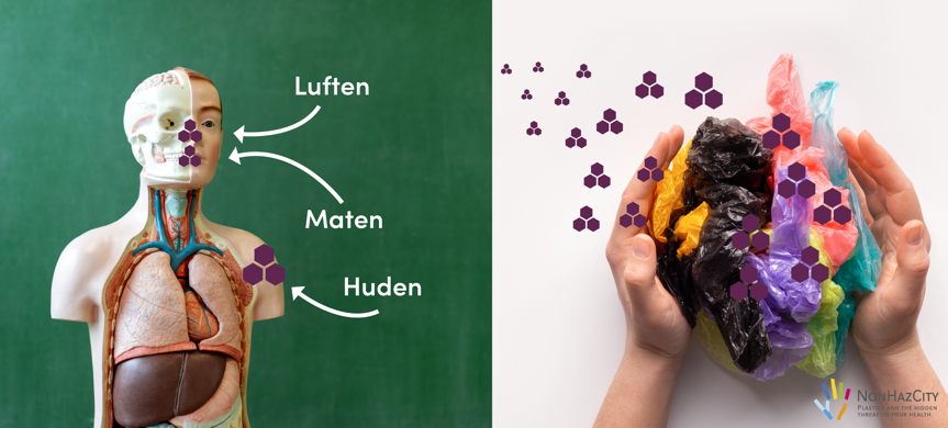 De flesta plastmaterial består av blandningar av olika polymerer som oftast kommer från fossila råvaror. Dessutom adderas en cocktail av tillsatsämnen som ger plasten en särskild funktion, till exempel att den blir böjbar (mjukgörare), skapar ett UV-skydd (UV-filter) eller blir brandsäker (flamskyddsmedel). Vissa av dessa ämnen är ett hot mot vår hälsa eftersom de dessutom har mindre önskvärda egenskaper. De kan till exempel vara hormonstörande, påverka fertiliteten eller vara cancerframkallande. Dessa ämnen har en tendens att läcka ut från plasten och kan hamna i våra kroppar.