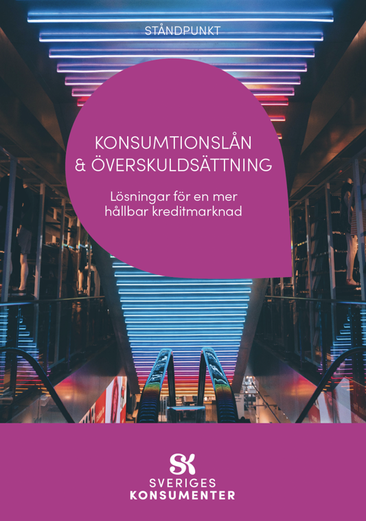 Läs Sveriges Konsumenters ståndpunkt ”Konsumtionslån & överskuldsättning – lösningar för en mer hållbar kreditmarknad”.